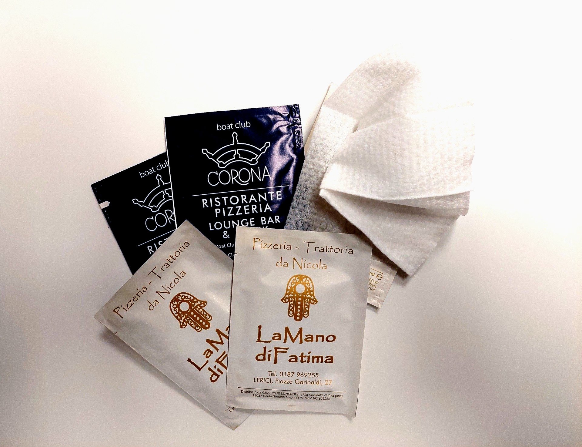 Bustine Porta Posate vengono realizzate con carta bianca politenata o carta paglia. Il tovagliolo utilizzato e' un doppio velo di cellulosa,f.to 38x38 cm piegato a 8.